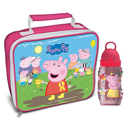 Peppa Pig Muddy Puddles Lunch Bag and BottleLunch bag is approx 24 x 20 x 7.5cm.Includes a plastic drink bottle with freeze stick.