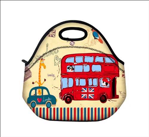The Best Consumer Reviews About Red bus and blue car Kids Insulated Soft Lunch box Neoprene Food Bag lunchbox Cooler warm Pouch Tote Handbag for school work office